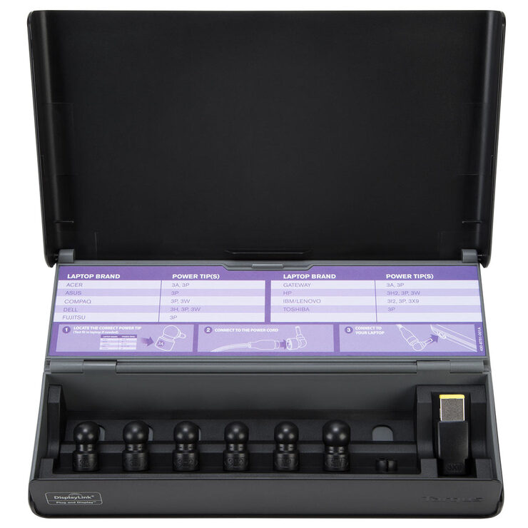 Create a dual beyond HD video workstation or connect a single 2K monitor with the Universal USB 3.0 DV Docking Station. It delivers integrated power and charging, and it’s designed to support multiple host platforms and brands for a broad range of compatibility with peripherals and devices. With five USB 3.0 ports (including one that’s high-powered for charging devices and one that’s Type-C), plus an Audio In/Out port for speakers, mics, or headphones, it’s easy to customise your workstation. The integrated Gigabit Ethernet connection is more secure and faster than most Wi-Fi connections. Charging tips are included so that the dock can power most major laptop brands, and they’re all neatly stored within a removable compartment in the dock.